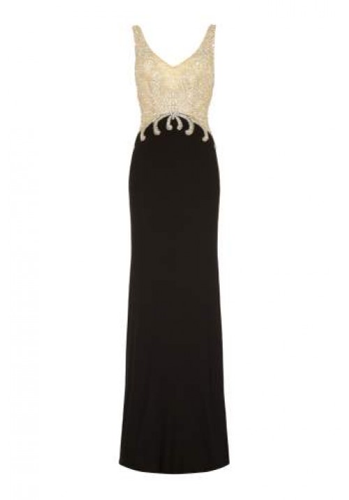 Black and nude beaded long dress