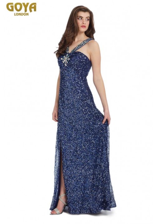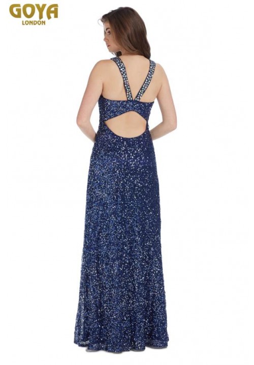 Navy long sequin dress halter neck