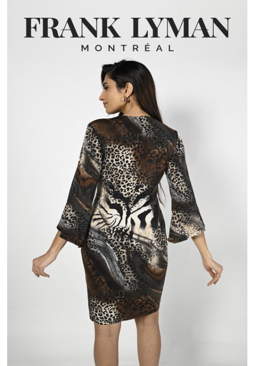 Tags: Frank, Lyman, 223277, brown, beige, short, dress, with, frill, sleeves, wedding, guest, cruise wear, special, occasion, wear