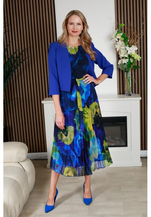Tags: Glitz, 1547, blue, multi, 3/4, dress, pleated, dress, with, sleeve, matching, jacket, wedding, guest, mother, of, bride, mother, of, groom, special, occasion, wear
