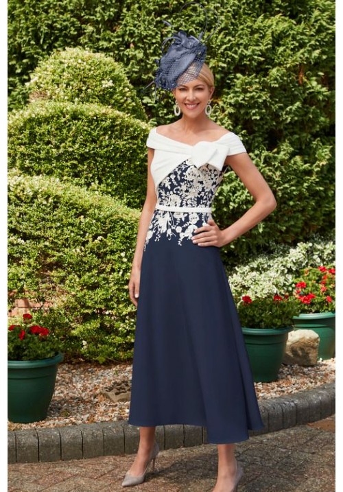 Tags: Ronald, Joyce, Veni, Infantino, 991855A, Navy, Ivory, 3/4, Length, dress, a line, calf, length, off, the, shoulder, with, bow, mother, of, bride, groom, wear, special, day, at, the, races,