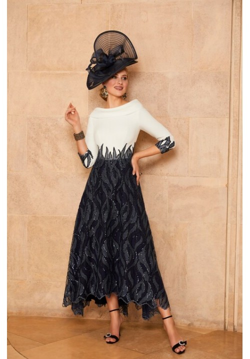Ivory/ Navy 3/4 dress