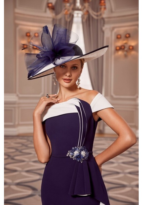 Tags: Veni, Infantino, Ronald, Joyce, 992003, navy, ivory, short, frill, off, shoulder, mother, of, bride, mother, of, groom, special, occasion, wear