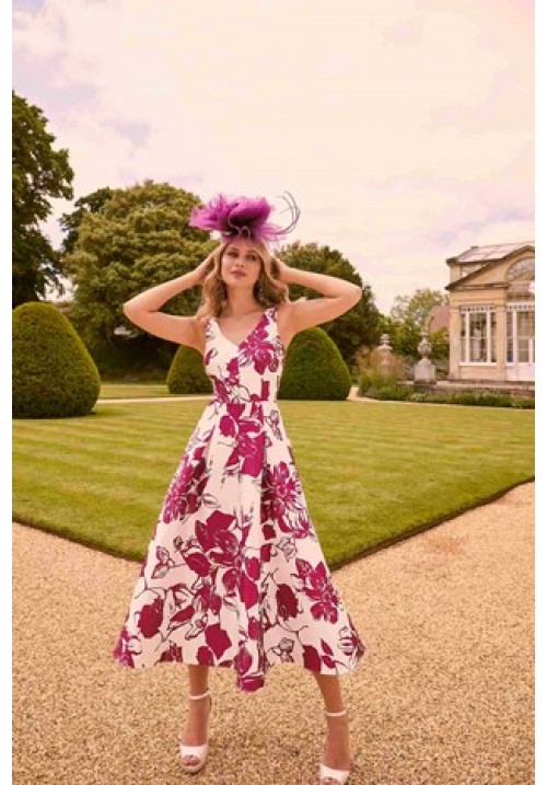 Tags: Veni, Infantino, 36015, Magenta, Ivory, print, 3/4, dress, with, wrap, mother, of, bride, mother, of, groom, special, occasion, wear, day, at, the, races