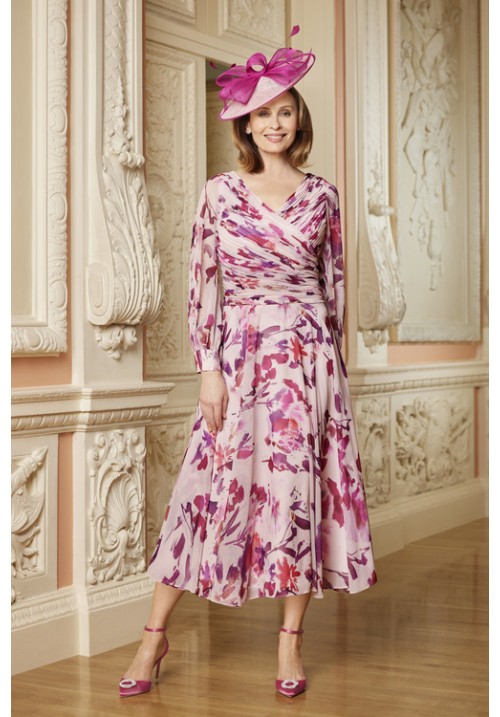 Fuchsia pink print 3/4 dress with sleeves