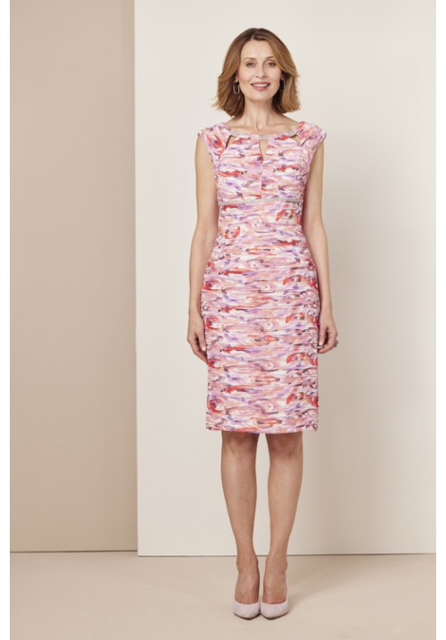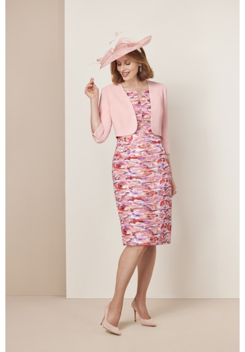Pink and coral print short dress with matching jacket