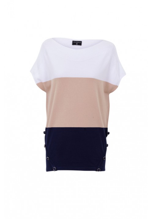 Beige, white, navy stripe, top