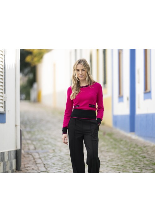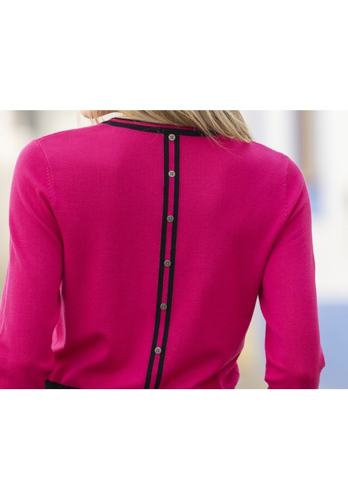 Tags: Marble, 8000, Pink, black, round, neck, jumper, button, details, casual, wear, day, wear