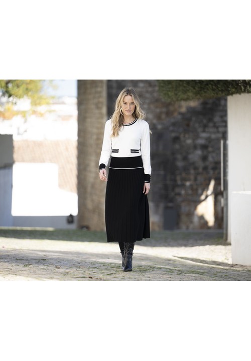 Tags: Marble, 8000, White, black, round, neck, jumper, button, details, casual, wear, day, wear