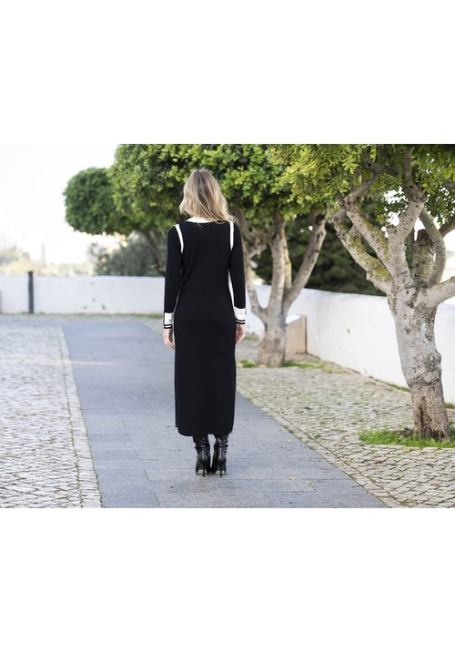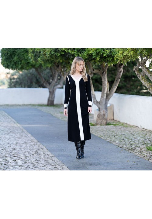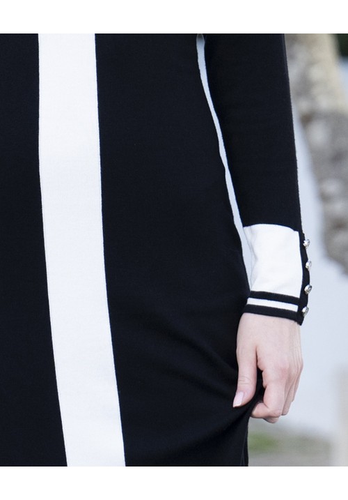 Tags: Marble, 8019, black, white, stripe, knit, dress, 3/4, length, casual, wear, day, wear