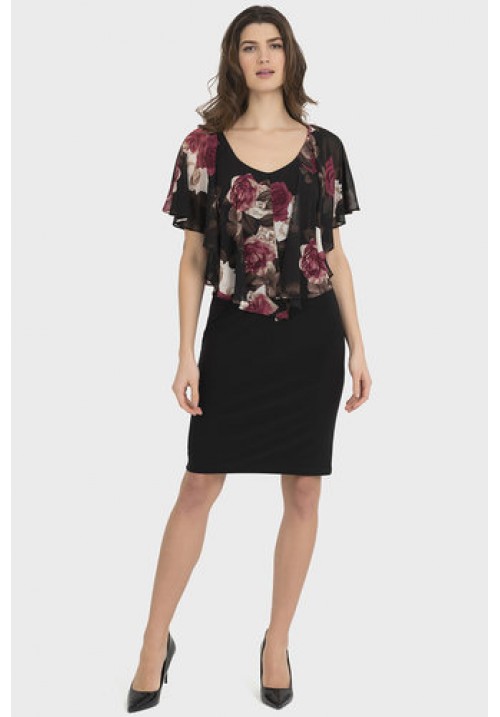 Tags: Joseph, Ribkoff, 194679, black, floral, short, dress, chiffon, over, layer, casual, wear, day, wear, cruise, special, occasion