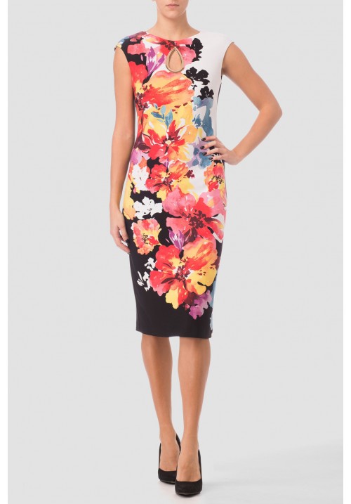 white coral print 3/4 dress