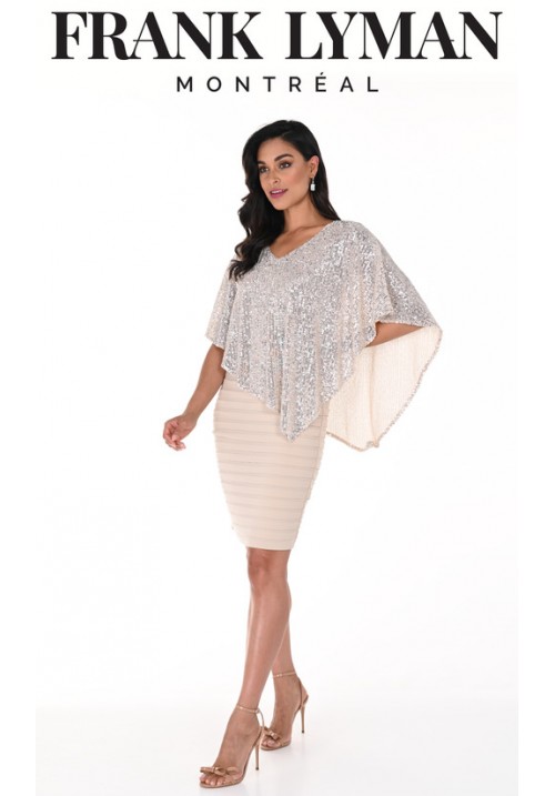 Tags: Frank, Lyman, 248133, Nude, silver, short, dress, with, sequin, over, layer, cocktail, wear, cruise, wear, special, occasion, wear
