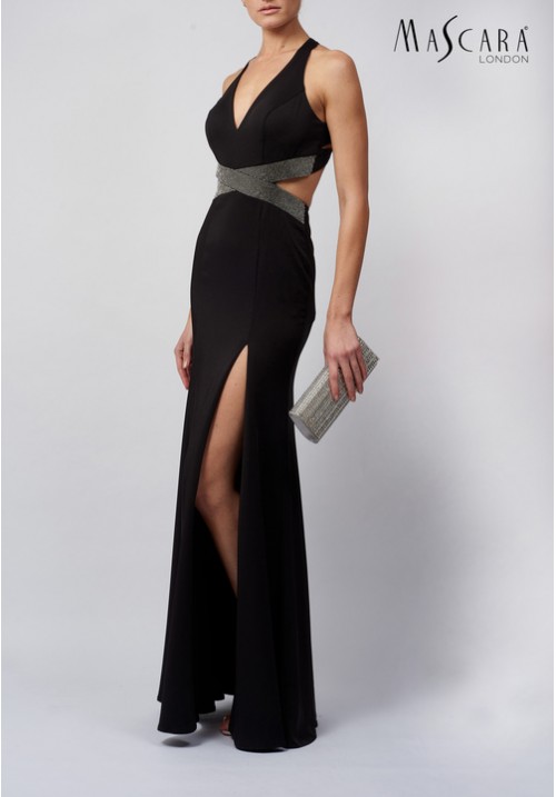 Black long dress beaded detail