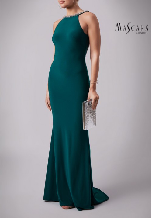 Emerald green long dress with low back