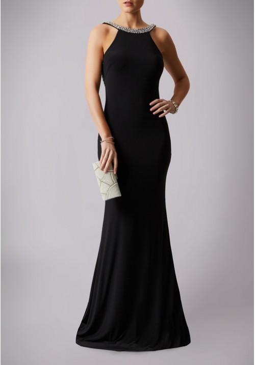 Black long dress halter neck