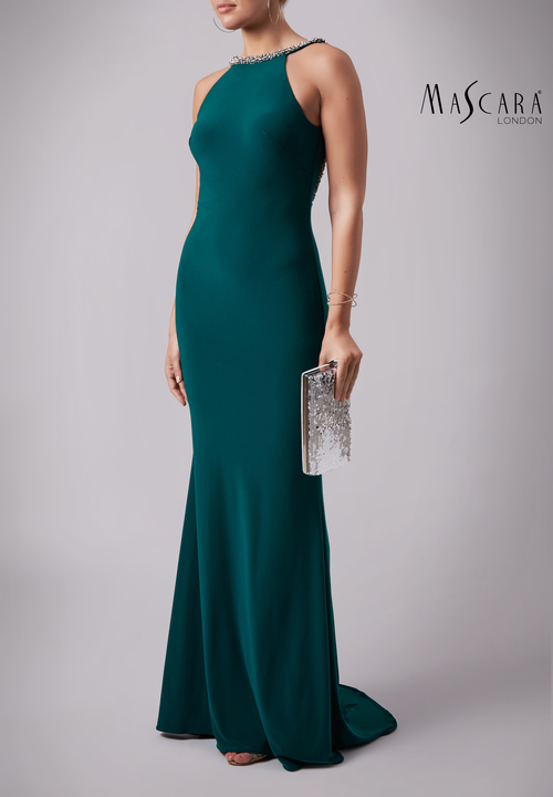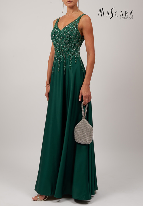 Emerald green long dress with beaded bodice