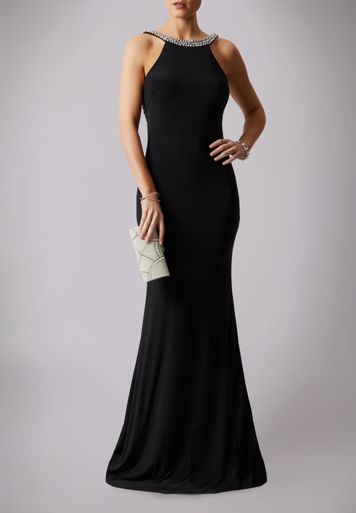 Black long dress halter neck