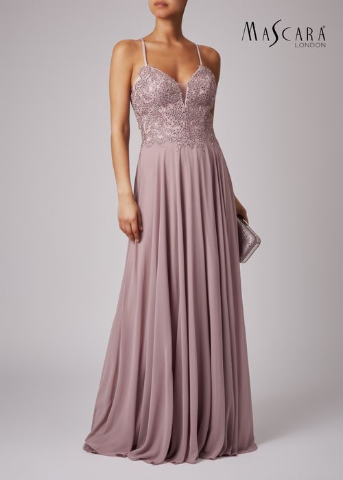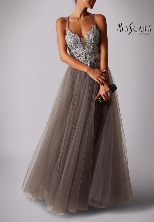 Taupe long dress beaded bodice