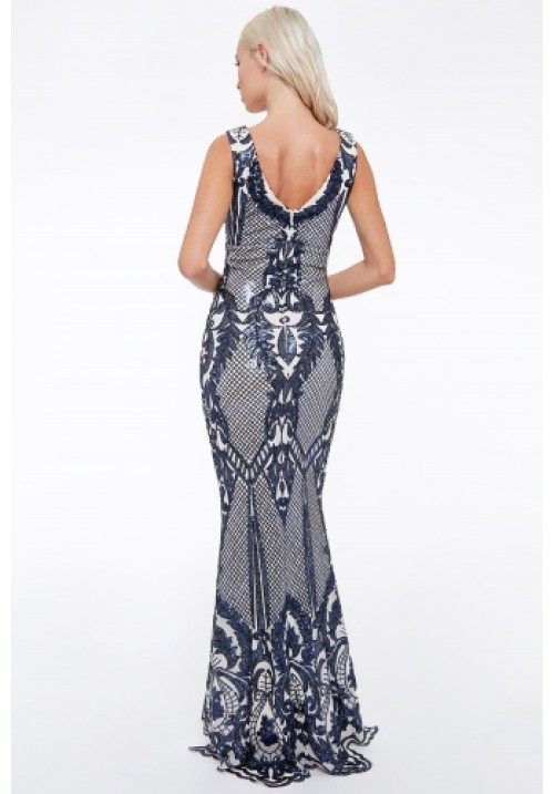 Nude and blue sequin long dress