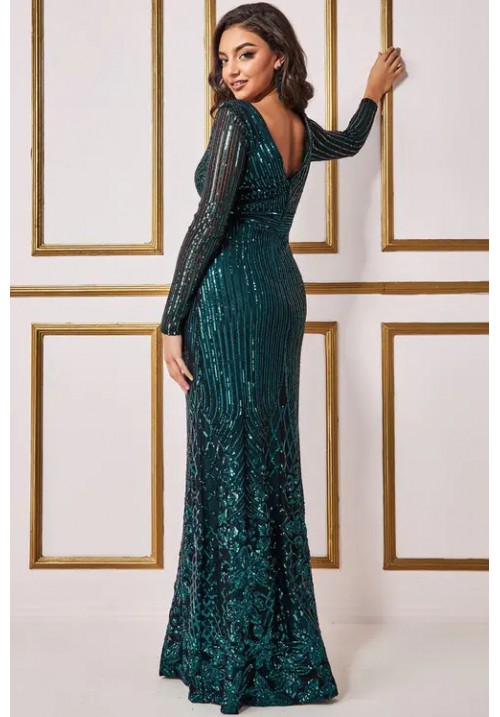 Tags: City, Goddess, DR3485, Emerald, green, Sparkle, long, sleeve, prom, evening, wear, cruise, wear, special, occasion, wear