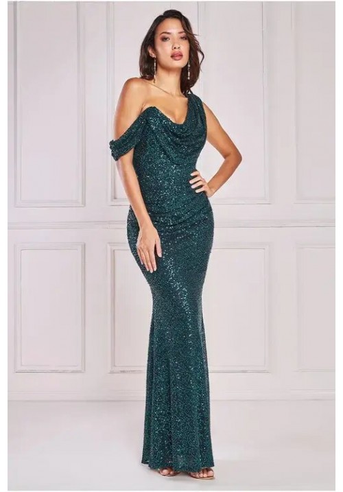 Emerald green one shoulder long dress