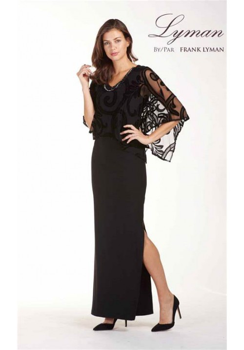 Tags: Frank, Lyman, 189385, black, long, dress, velvet, over, top, detachable, neck, evening, cruise, wear