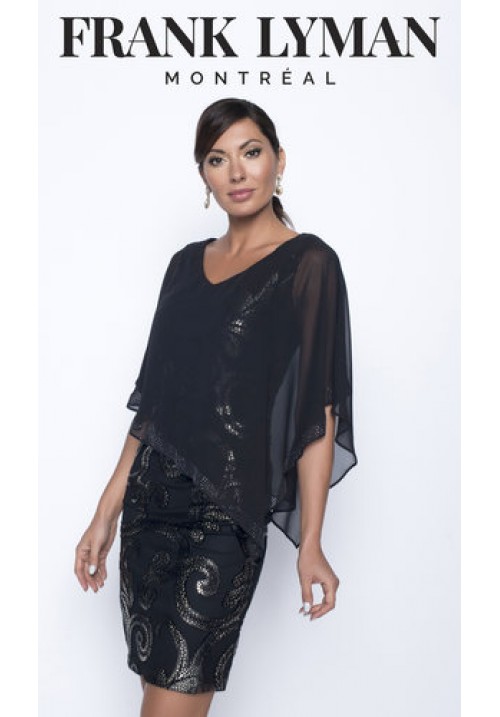 Tags: Frank, Lyman, 199234, black, bronze, short, dress, with, chiffon, over, top, cruise, wear, special, occasion, and, evening, wear, cruise