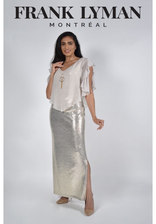 Tags: Frank, Lyman, 222181, Gold, sparkle, long, dress, with, chiffon, over, top, cruise, wear, evening, wear, special, occasion, wear