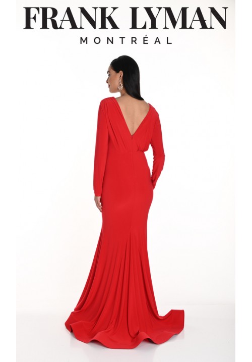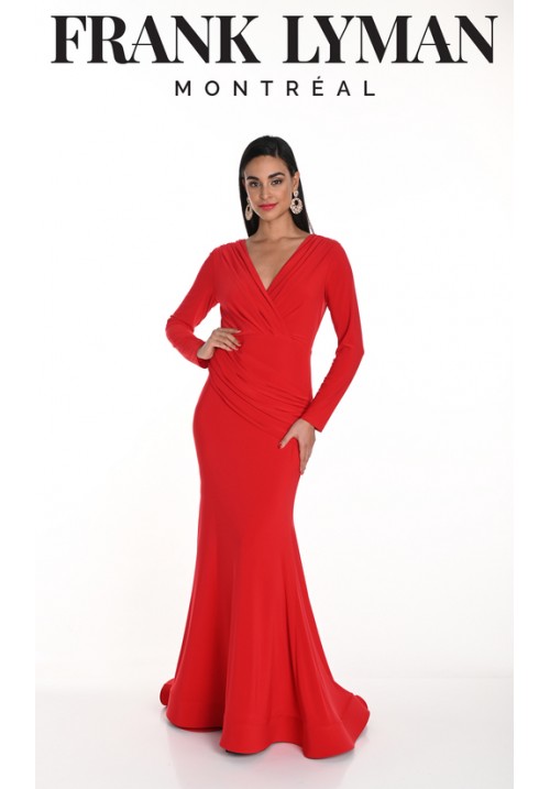 Tags: Frank, Lyman, 249005, Red, long, dress, with, V-neck, long, sleeve, evening, wear, cruise, wear