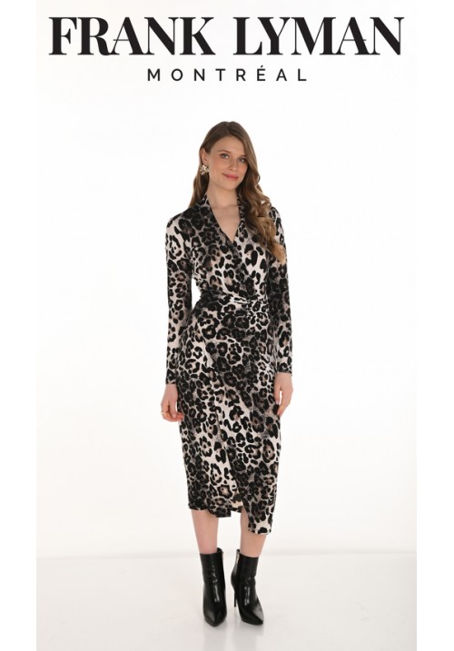 Tags: Frank, Lyman, 254217, beige, black, leopard, print, 3/4, dress, long, sleeve, V-neck, cruise, wear, guest, wear,