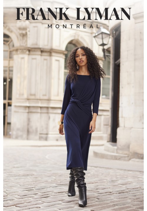 Tags: Frank, Lyman, 254001, navy, 3/4, dress, 3/4, sleeve, round, neck, cruise, wear, guest, wear, evening, wear