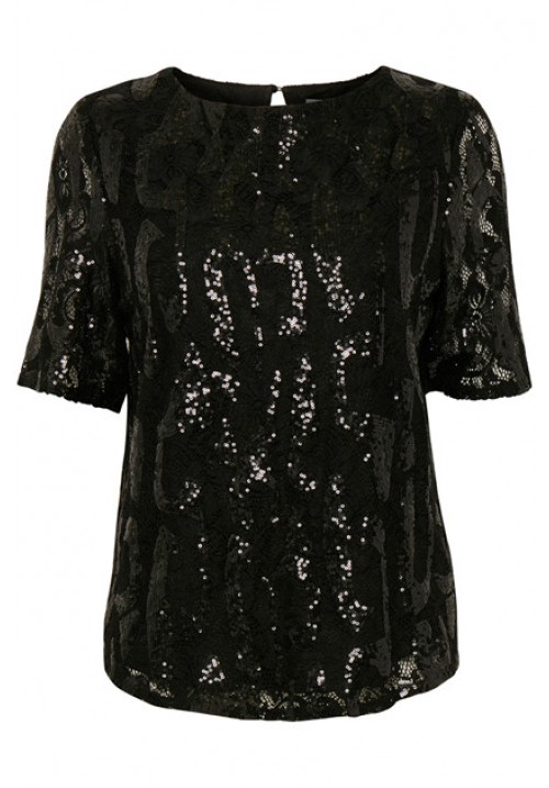 Black sequin short sleeve top