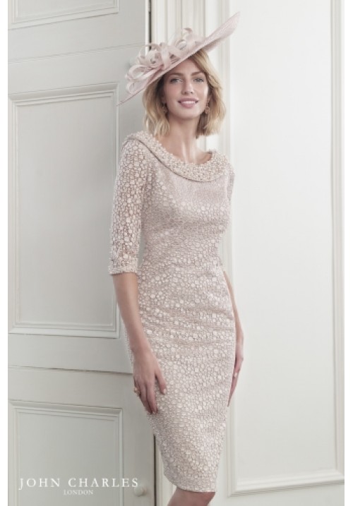 Tags: John, Charles, 265592A, blush, lace, sparkle, short, dress, pearls, diamante, detail, 3/4, sleeve, mother, of, bride, groom