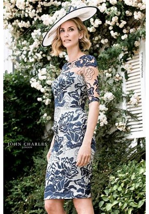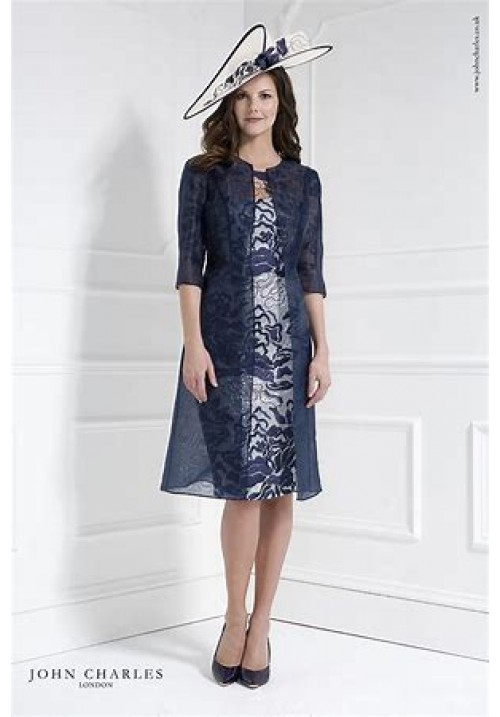 Tags: John, Charles, 26001A, navy, ivory, sparkle, print, short, dress, 3/4, sleeve, navy, 3/4, jacket, mother, of, bride, groom, outfit, special, occasion